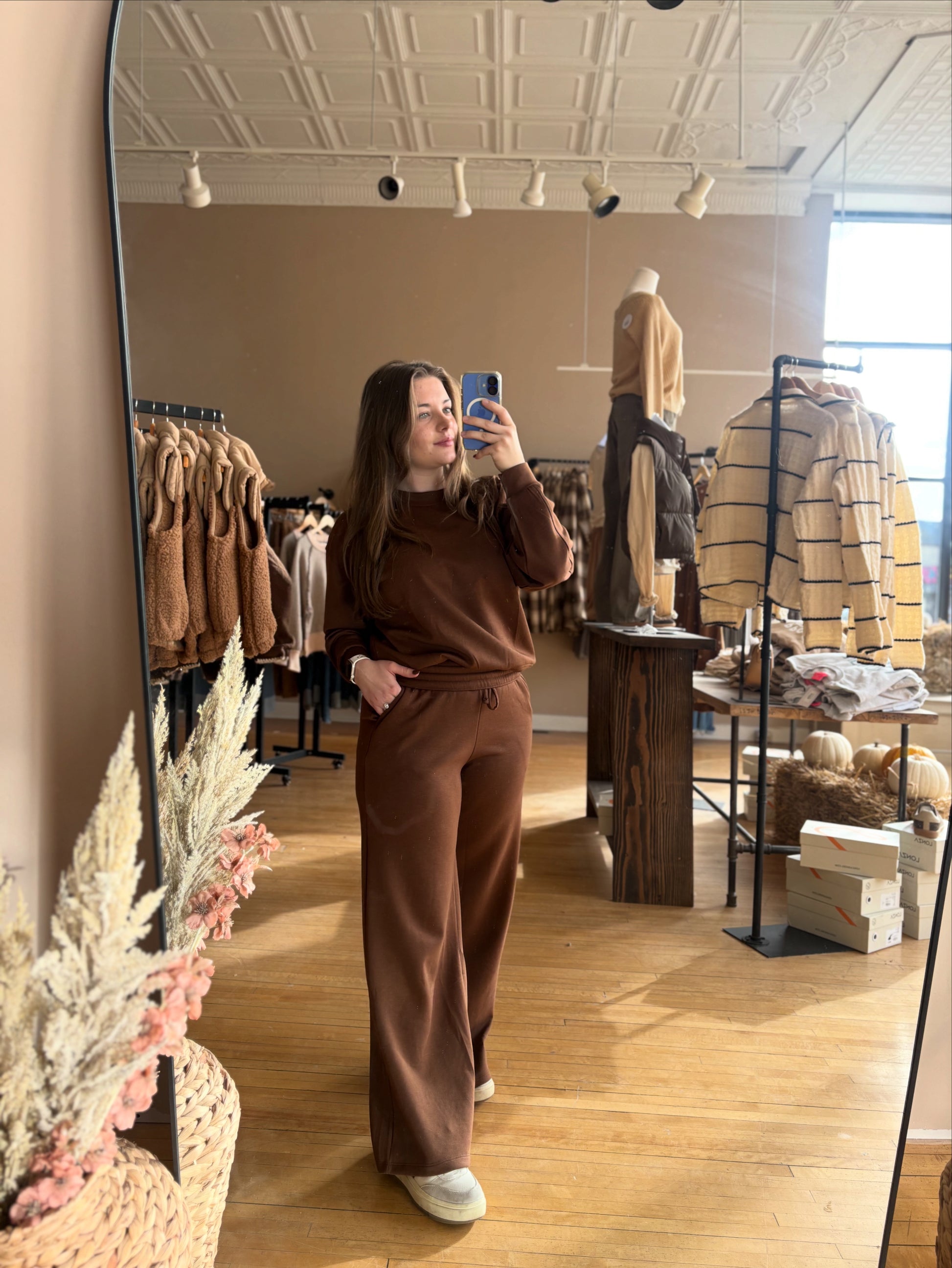 Indulge in comfort with the Chocolate Fudge Set! This perfectly coordinated matching set pairs a soft top with matching bottoms for effortless, put-together style. Wrapped in plush, touchable fabric, it's ideal for lounging, running errands, or just enjoying cozy downtime. Sweet, soft, and absolutely delicious to wear!