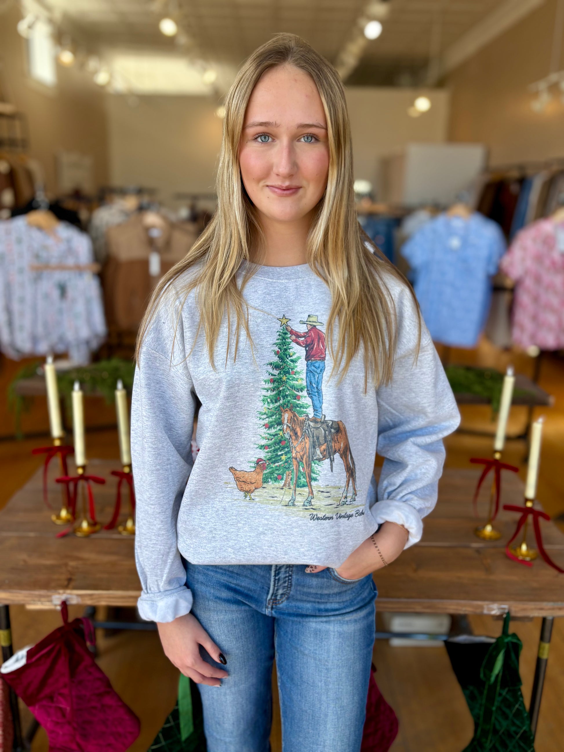 Saddle up for the holidays in this festive western Christmas crewneck! Featuring classic cowboy charm meets yuletide spirit, this cozy pullover blends rugged style with seasonal cheer. Perfect for ranch gatherings, holiday parties, or anyone who loves their boots and baubles equally. Soft, comfortable, and ready to make you the most stylish buckaroo at any Christmas celebration.