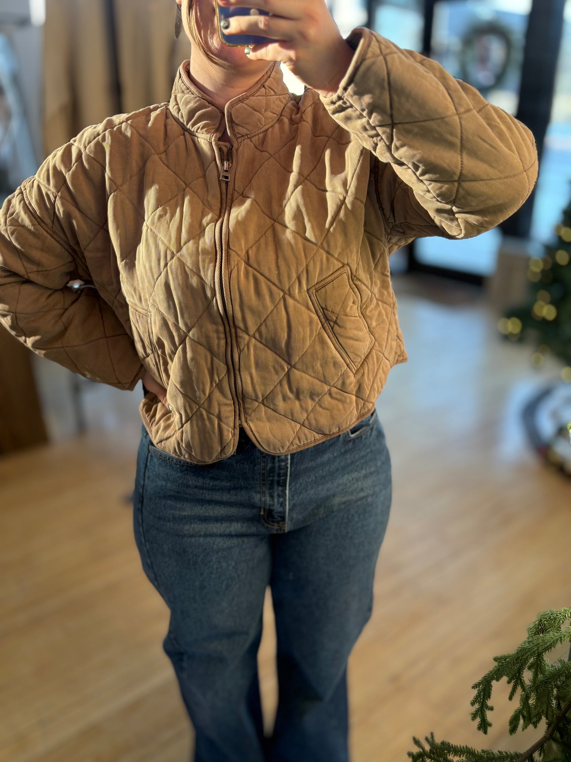 The Lyla Quilt Jacket combines timeless quilted design with modern versatility. This warm, lightweight layer features a flattering cropped silhouette that pairs effortlessly with everything from jeans to dresses. The full zipper allows you to adjust warmth on the fly, making it perfect for layering through transitional seasons. Crafted for comfort and style, the Lyla delivers the cozy sophistication you've been searching for.